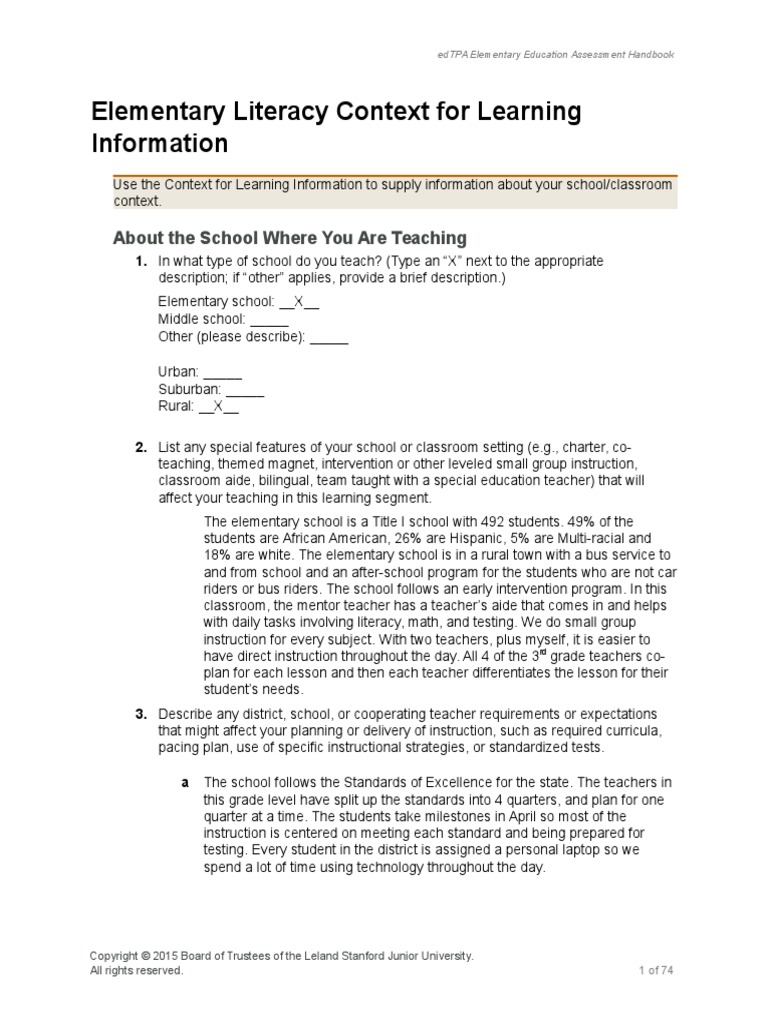Web Edtpa Context For Learning Template Original Title: