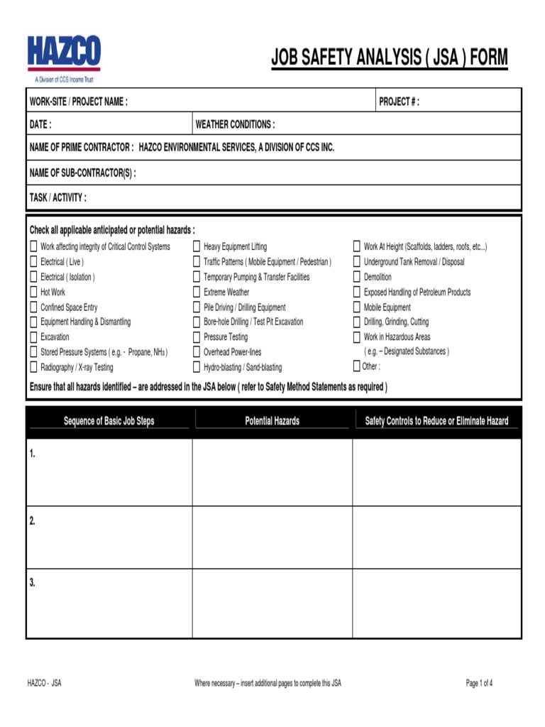 Web get a blank jsa template 0 template with signnow and complete it in a few simple clicks. Its wide collection of forms can save your time and boost your efficiency massively. Web download a free digital jha/ jsa form template use our free digital construction form templates as a standalone solution, or in our forms software. The advanced tools.